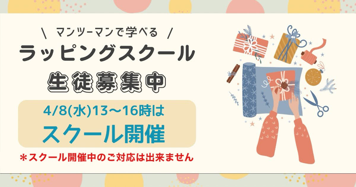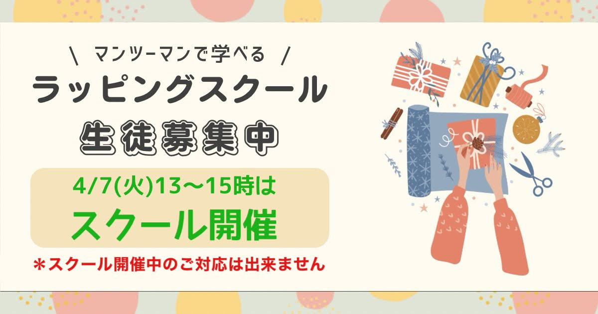 4月7日(火)、8日(水)はラッピングスクールのご予約が入っております。
