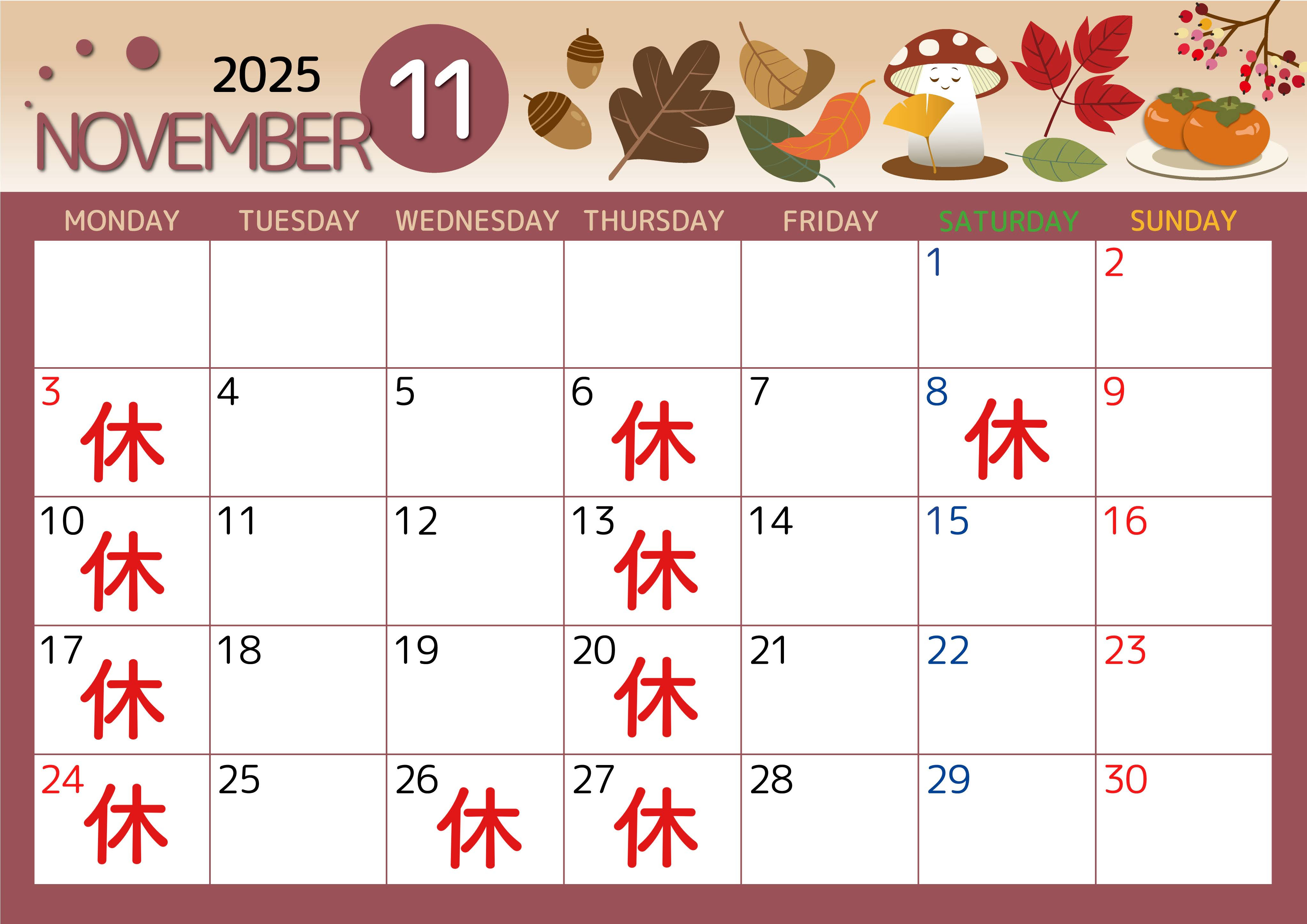 11月8日(土)、26日(水)は臨時休業